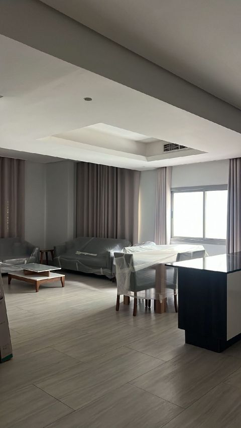 For rent: a large apartment in Riffa / Al-Hajiyat, behind Ibn Al-Jazari Mosque. It has a living room, 4 bedrooms, 3 bathrooms, and a kitchen. The price is 300 dinars, not inclusive. For contact.