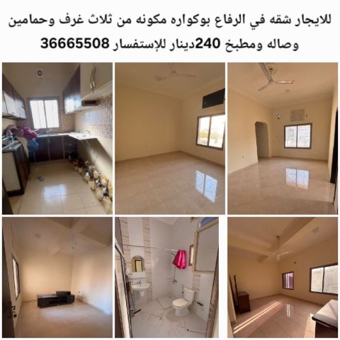 Apartment for rent in Riffa East, Abu Quwara, with electricity up to 30 dinars, which the owner will pay. It is a residential area with all services available, including refrigerators, bakeries, restaurants, and a laundry. We are looking for good clients. We offer the lowest price in the Riffa Abu Quwara area. Features: 1 bedroom, 1 bathroom, living room, large kitchen, shaded parking space, ground floor. Electricity up to 30 dinars. Rent: 160 dinars. Contact number provided.