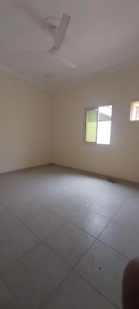 An apartment in Riffa, close to Lulu Hypermarket, on the ground floor with two entrances, subsidized. It consists of a living room, a separate bathroom, three bedrooms (one master with two bathrooms), a small hall, and a kitchen.