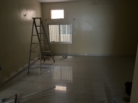 For rent: A ground-floor annex of a villa, consisting of 4 large bedrooms, 3 bathrooms, a kitchen, a very large living room, a small yard, a private entrance, and external parking. Its location is quiet, central to services, in Rafaa Al-Hajiyat, behind car showrooms. The rent is approximately 330 Bahraini dinars, inclusive of electricity, and negotiable. For more details, please contact us.