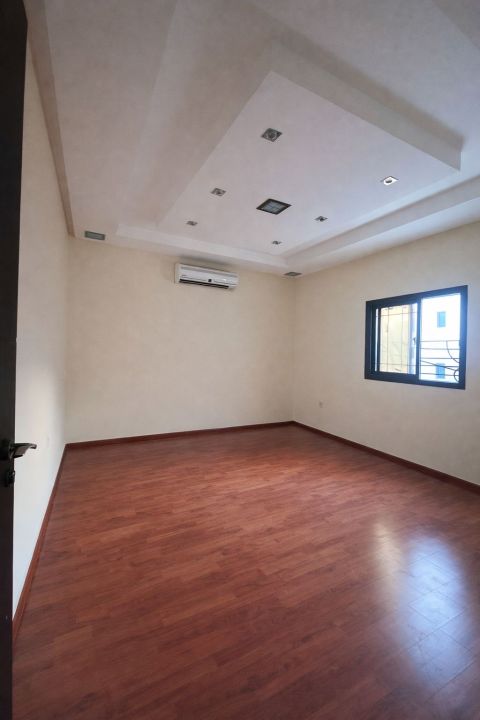 A very large and elegant villa for rent in Riffa with air conditioning. 4 bedrooms, 3 bathrooms, maid's room, external master bedroom with a private clean bathroom, majlis living room, laundry room, 2 kitchens (large internal and isolated - and external kitchen), 3 internal parking spaces with air conditioning and remote control for opening and closing, 2 storage rooms, a small room suitable for an office, large external courtyard, garden, and children's playground for entertainment. 600 dinars without electricity.