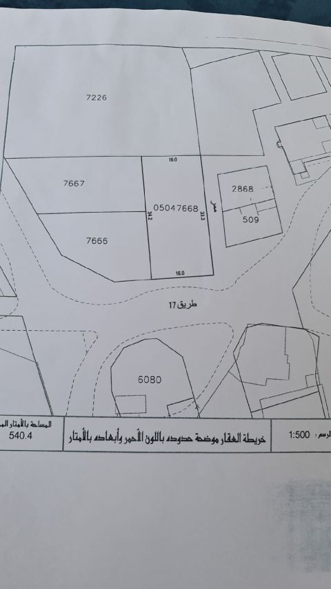 Real estate properties for sale: a residential land in Sar. Area: 508.9 square meters. Classification: residential RA. Price per square foot: 24 dinars. Total price: 131.5 thousand dinars. Reference: LS1700.