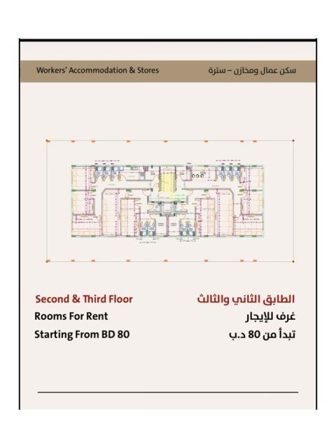للإيجار: سكن للعمال في سترة، يستوعب حتى 200 شخص من 35 غرفة. السعر: 3500 دينار (بالإضافة إلى قبو: 500 دينار). محلات تجارية للإيجار ابتداءً من 120 دينار. مساحة الأرض: 700 متر مربع.