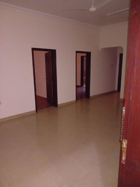 شقة كبيرة ونظيفة للإيجار في الرفاع بالقرب من اللولو، طابق أرضي، غرفتين (منها غرفة ماستر) حمامين، مطبخ، صالة، موقف سيارة،160 دينار بدون الكهرباء