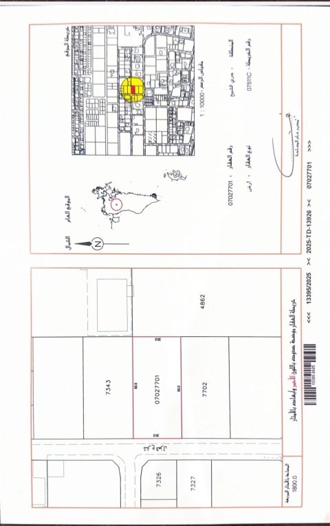 للبيع قطعتين أرض سكنية في جري الشيخ الرفاع مساحة كل قطعة 1800 متر مربع تصنيف الأرض RA سكني 30*60 متر السعر 26 دينار نهائي للقدم السعر 503700 دينار للقطعة الواحدة