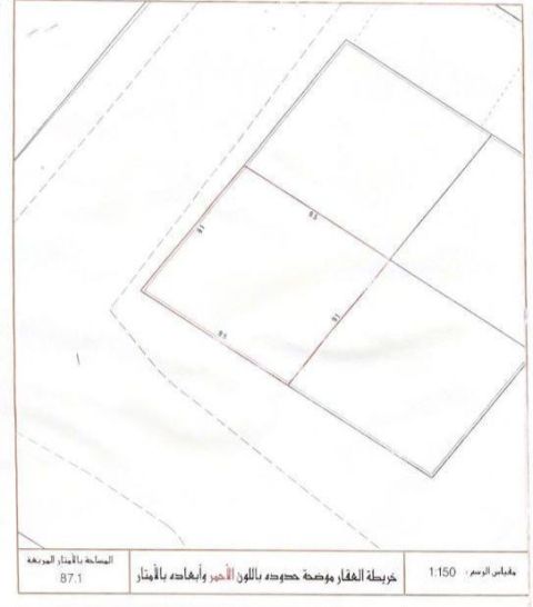 For sale: Two residential land plots in East Riffa, behind the police station. Each plot is on a corner and has two streets. Classification: RB (Private Residential). The first plot area is 87 square meters, the second plot area is 87.1 square meters. Price per plot: 35,000 Bahraini dinars.