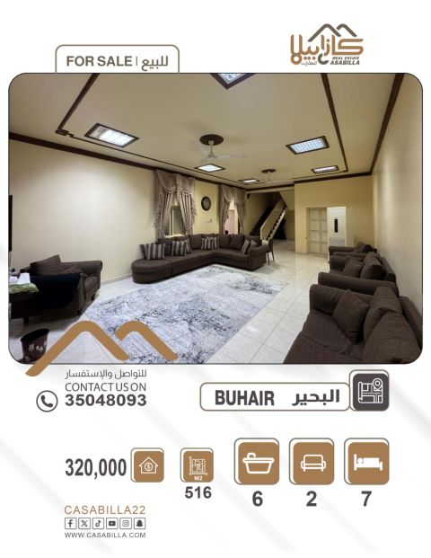 For sale: A two-story villa on two streets (corner) in East Riffa (Abu Kuwara). There is a large area on the street in front of the house. Ground floor: four rooms, two bathrooms, internal kitchen and storage, external kitchen, bathroom, very large courtyard, garage for two cars, storage. First floor: two rooms, bathroom, roof. Land area: 419 square meters. Price: 153,000 dinars (negotiable). Agency: Sar Real Estate, Abdullah Al-Jana, neighborhood.