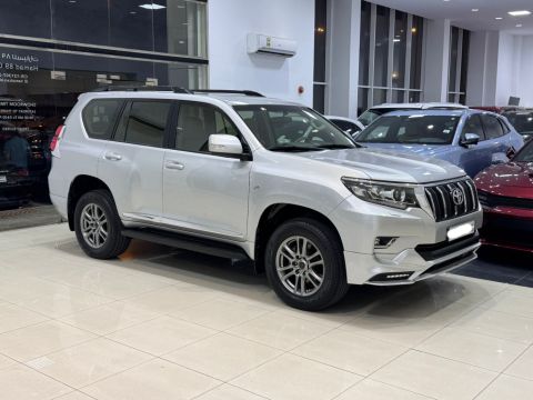 Toyota Prado TX-L 2018 (Silver) with 98,750 km mileage. Full options include alloy wheels, cruise control, camera, sensors, Bluetooth, sunroof, leather seats, push button start, 6 cylinders, 4.0L engine, 7 seats. Price BD12,700 (negotiable). Insurance valid until May 26. Contact for details.