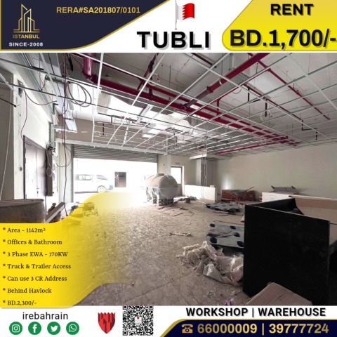 A commercial space for a central kitchen in Tubli - 1700 Bahraini Dinar. This distinguished commercial space in Tubli offers a facility with an area of 650 square meters, fully equipped to operate a central kitchen, and includes a three-phase electrical infrastructure from the Emirates Electricity and Water Authority, with most specialized equipment completed. The location features easy access for trucks and trailers, in addition to providing 24-hour security, ensuring efficient logistics services and peace of mind.
