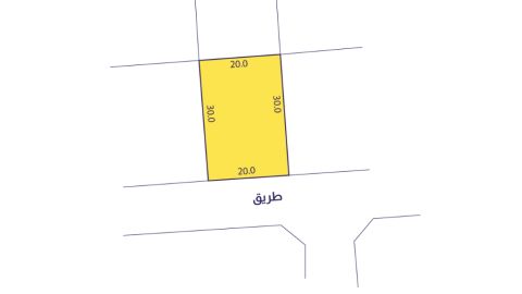 For sale residential land in Tubli facade 20 meters area 500 SQM classification residential RB price per foot 27 dinars total price 145314 dinars for contact