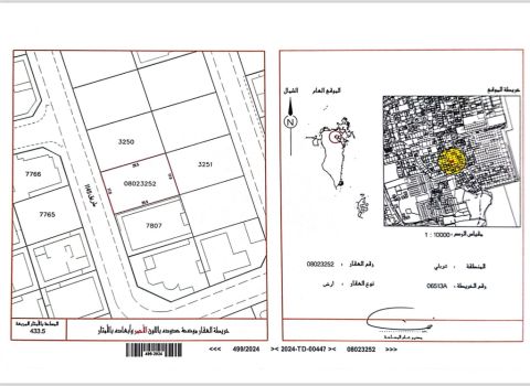 Dominions real estate for sale A unique opportunity to own a residential land in Tubli, behind Hassan Mahmoud. The land is classified as RB (Private Housing) with an area of 354.3 SQM. The price is 27.8BD per SQM, totaling BD106000 only. The land can be purchased through programs of the Ministry of Housing and Urban Planning, such as Mazaya or Taseel. REF 5344