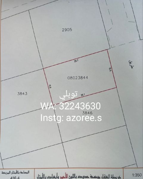 For sale a residential land in Tubli, area 416.4 SQM, classification residential RB, price per square foot 26 dinars, total price 116535 dinars