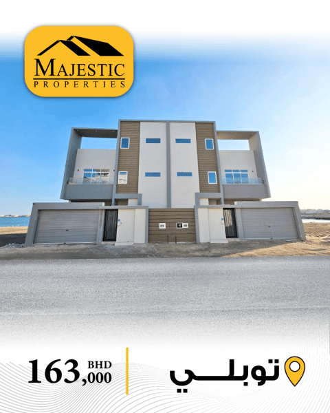 A new luxury villa for sale in Saraya - 1, Sar, priced at 375,000 Bahraini Dinars. This modern, luxurious villa is located in the Sar area, Saraya - 1, near Macro Mart. It consists of a large living area overlooking the pool and garden, a majlis, a guest bedroom with an attached bathroom, a shared laundry area, a storage elevator, 2 well-equipped kitchens, central air conditioning on the ground floor, 4 master bedrooms with dressing areas and living spaces, a balcony on the first floor, and a room.