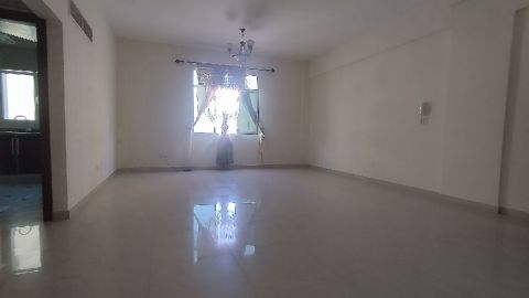 Zinj 2BHK spacious unfurnished flat for rent. BD250 without EWA. Includes hall, 2 bedrooms, 2 bathrooms, and a closed kitchen. Available car parking and elevator. Reference number K040405. Contact for details