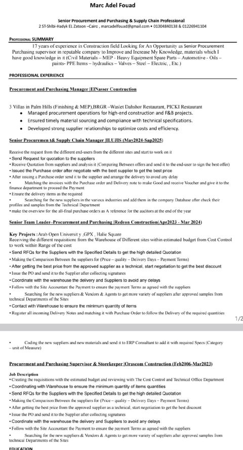 My CV to procurement department or purchasing department and I need to help me to find new chance in your company