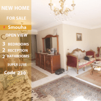 شقة للبيع 150م سموحة 3 غرف، 2 ريسبشن، 2 حمام الدور 9، عمارة 11 دور تشطيب سوبر لوكس شقة مرخصة، بناء 2000كاملة عدادات عدد 1 مصعد فيو مفتوح الكود 0230 - الوكيل/ رنا أشرف