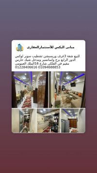للبيع شقة 3 غرف وريسبش تشطيب سوبر لوكس الدور الرابع برج ومصعد ومدخل شيك حارس مقيم جميع العدادات والخدمات. الفلكي شارع 16 الملك العمومي بجوار بيت الجملة