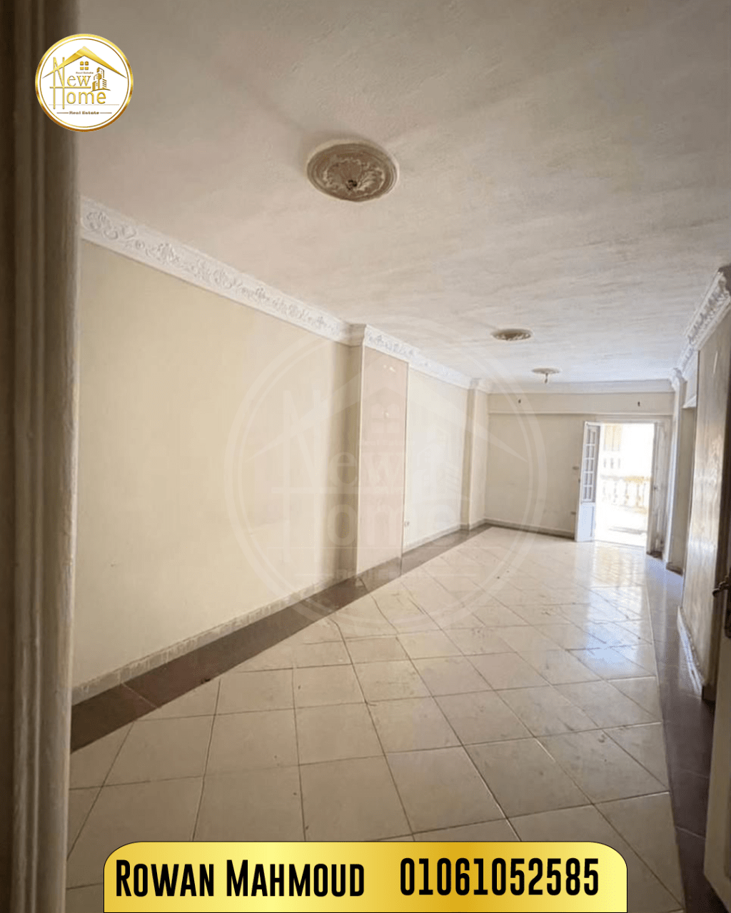 Apartment for sale, 95m - Miami Agent Rawan Mahmoud 01061052585 - 2 bedrooms + 3 reception rooms + 1 bathroom + 1 kitchen - 5th floor, 19 - story building on the roof - 1 elevator - Licensed - Super deluxe finishing - Meter (electricity, water, gas) Cash 1750000 - Code 0105