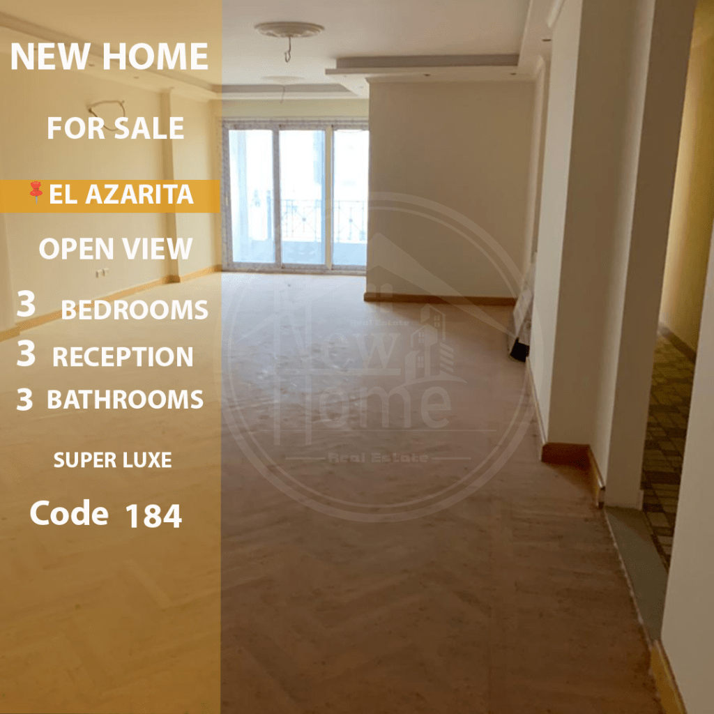 شقة للإيجار 179م الأزاريطة - السعر 35000ج 3 غرف (منهم غرفة ماستر) 3 ريسبشن، 3 حمام الدور 7، عمارة 11 دور تشطيب سوبر لوكس شقة مرخصة، بناء 2000كاملة عدادات عدد 2 مصعد فيو مفتوح الكود 0184 - الوكيل/ روان محمود