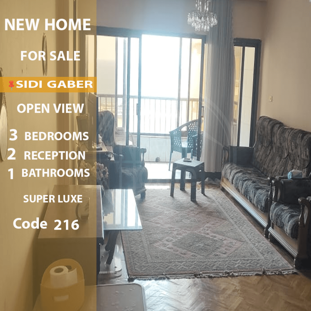 شقة للإيجار الجديد 130م سيدي جابر (مساكن الضباط) 3 غرف، 2 ريسبشن، 1 حمام الدور 12، عمارة 13 دور تشطيب سوبر لوكس كاملة عدادات عدد 2 مصعد الفيو مفتوح علي البحر الكود 0216 - الوكيل/ روان محمود