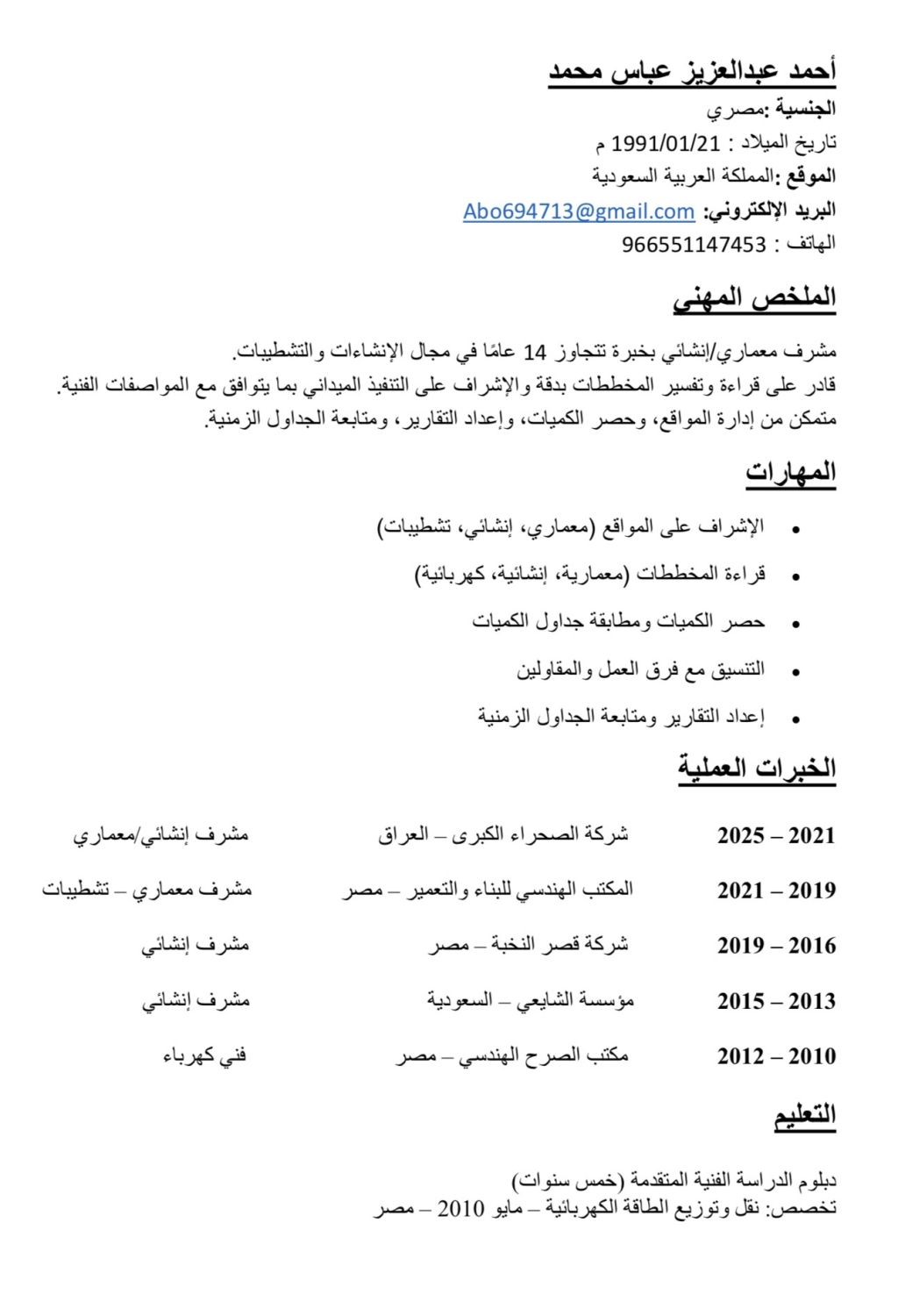 مشرف معماري خبرة 14 عام في مجال الانشاءات والتشطيبات