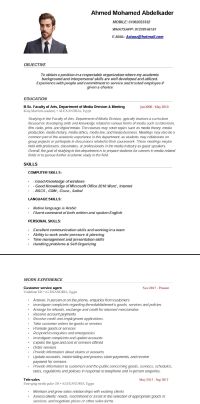 اسمي أحمد مصري مقيم في الاسكندرية حاليا عمري 35 عاما خريج كلية الآداب قسم اتصال واعلام ولدي خبرة سابقة لما يقرب من 10 سنوات في مجال الاتصالات والمبيعات واعمل حاليا في خدمة العملاء في شركة Vodafone international UK منذ عام 2017. ابحث عن فرصة أفضل في قطر فقط في نفس المجال والمبيعات بشكل عام. يرجى العلم بانني حاليا متواجد في مصر ويمكن التواصل عن طريق الهاتف أو واتساب أو الايميل. شكرا