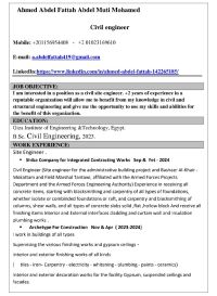 ابحث عن فرصة سفر الامارات أو العراق أو عمان كمهندس مدني موقع خبرة 3 سنوات في تنفيذ أعمال الخرسانات والتشطيبات، لدي خبرة قوية في الاشراف على المواقع، ضبط الجودة، استلام الأعمال، وإدارة فرق العمل وفق الجداول الزمنية. أجيد التنسيق مع جميع الأطراف بالمشروع. ابحث عن فرصة عمل بالخارج، وجاهز للسفر فورا والانضمام في أقرب وقت