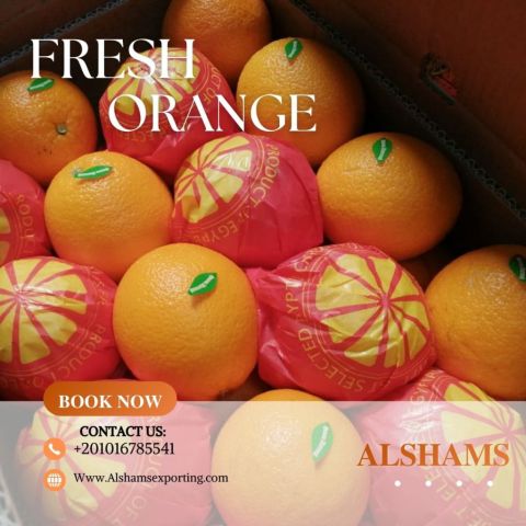 Alshams for Exporting Agricultural Crops We are pleased to announce that the season for exporting premium Egyptian fresh oranges is about to begin Our team is fully prepared to deliver top - quality products with the highest export standards. Book your quantity now to secure your shipment early Full product follow - up from sorting and packing until it reaches the customer We ensure comfort, trust