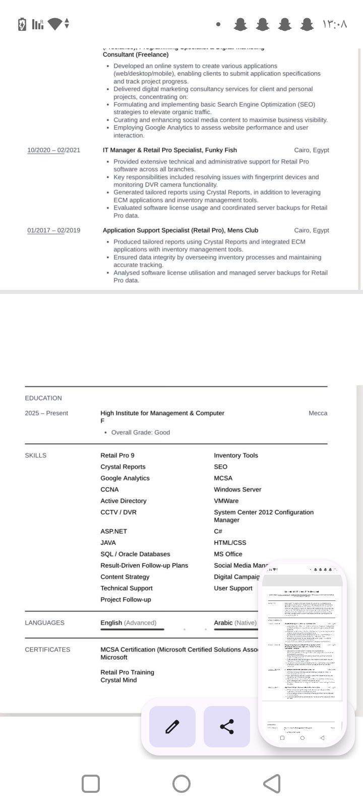 ابحث عن عمل موظف IT خبرة 9 سنوات أو مسوق الكتروني اعلانات ومحركات بحث ومدخل بيانات أنا متواجد داخل المملكة بتأشيرة زيارة