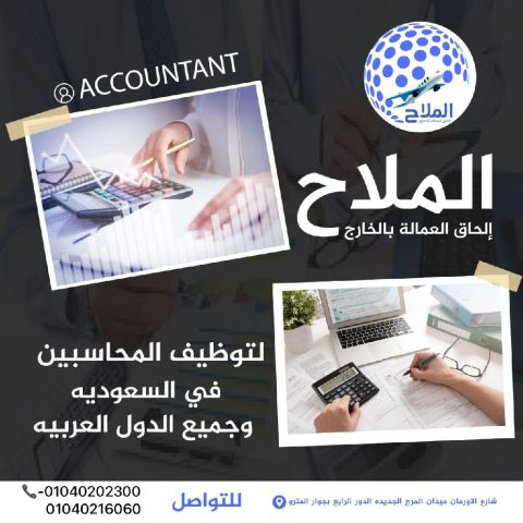 نحن شركة الحاق عماله مصرية بالخارج نوفر كافة التخصصات المطلوبة من محاسبين مدخلين بيانات وأمين مستودع وكواشير وكابتن صالة ومقدمين طعام وشيفات كافة التخصصات. بدون أي عمولة مالية على الوظيفة، ونستقبل تفويضات التأشيرات لانهاء اجراءات السفر في أقل وقت