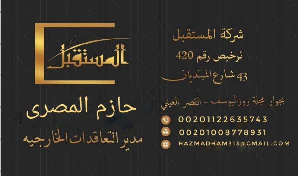 كيف حالكم، حابب أعرض عليكم خدمتنا. لدينا منصات توظيف في مصر - نقدر نوصل لأي مهنة أو تخصص خلال ساعات محدودة - نربط الشركات مباشرة بالمهتمين بالوظائف من مصر الى المملكة - وعندنا مكتب توظيف مرخص في مصر يسعدنا التعاون معكم في حال وجود طلب على عمالة مصرية من مصر للتواصل واتساب أ حازم