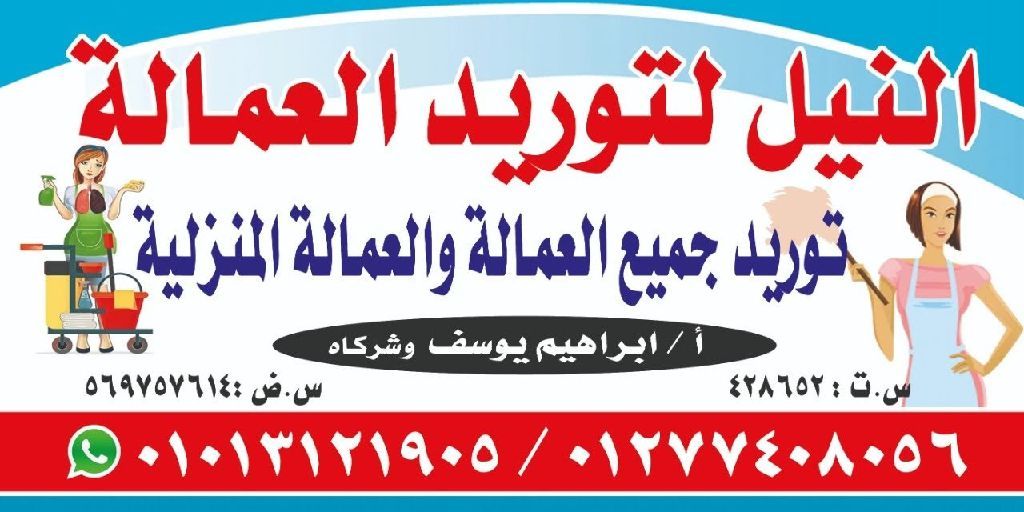 النيل لتوريد العماله يوجد لدينا جميع العماله المنزليه بكافة أنواعها جمال عماله قانونية نوفر العماله للجميع الدول العربية بأقل التكاليف