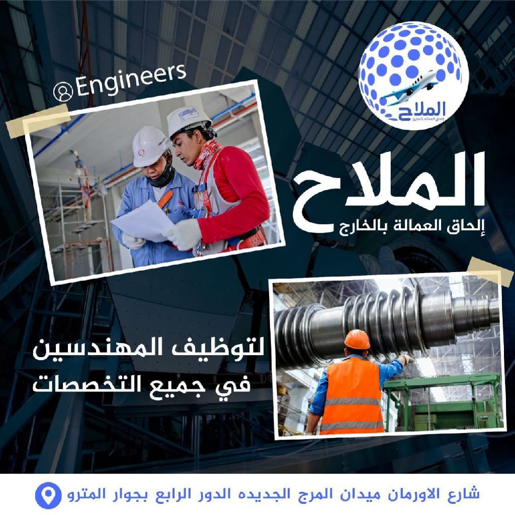 مع حضراتكم مسؤوله توظيف شركة الملاح متوفر لدي الشركة جميع العماله المصريه 1 مهندسين أطباء محاسبين - معلمين شيفات مطاعم - ووايتر - مساحين نجارين - حدادين مسلح - كهربائية - نفاشين - جبسون بورد - مبلطين رخام وسيراميك - بنايين - سباكين - عمالة منزلية - سائقين مع الملاح ستسافر وأنت مرتاح