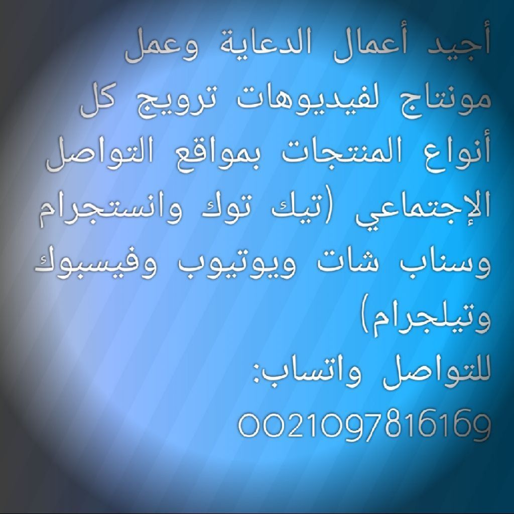 أجيد أعمال الدعاية وعمل مونتاج لفيديوهات ترويج كل أنواع المنتجات بمواقع التواصل الاجتماعي تيك توك وانستجرام وسناب شات ويوتيوب وفيسبوك. للتواصل