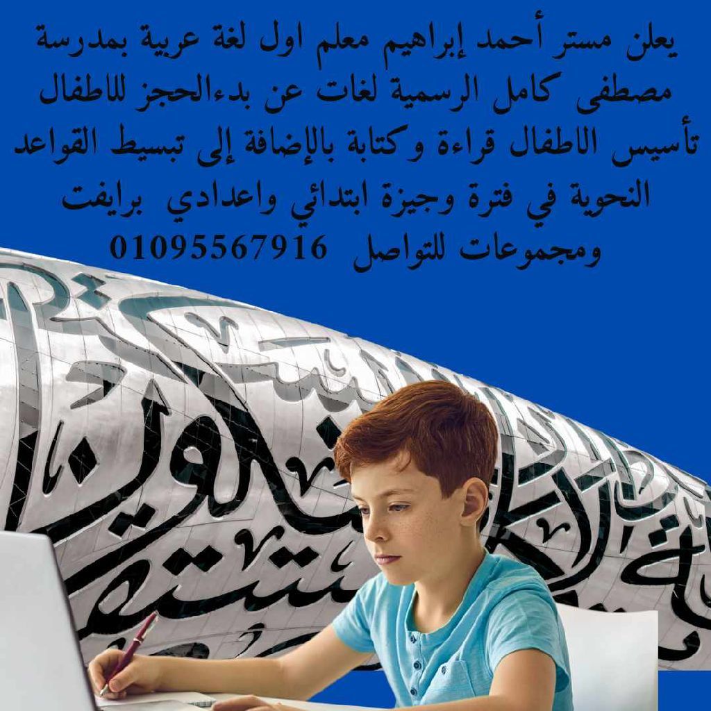 يعلن مستر أحمد إبراهيم ,معلم أول لغة عربية بمدرسة مصطفى كامل الرسمية لغات ببنها عن بدء الحجز تأسيس الاطفال قراءة وكتابة بالاضافة الى تبسيط القواعد النحوية في فترة وجيزة ابتدائي واعدادي للتواصل