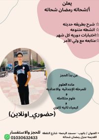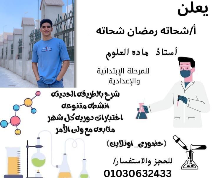 Your chance to excel with simplified explanations and individual follow - up With Mr. Shehata Ramadan Shehata Experienced online science teacher Foundational learning from scratch Strengthening + follow - up Exam review sessions For elementary and middle school students, and comprehensive science courses Online from home For details and registration