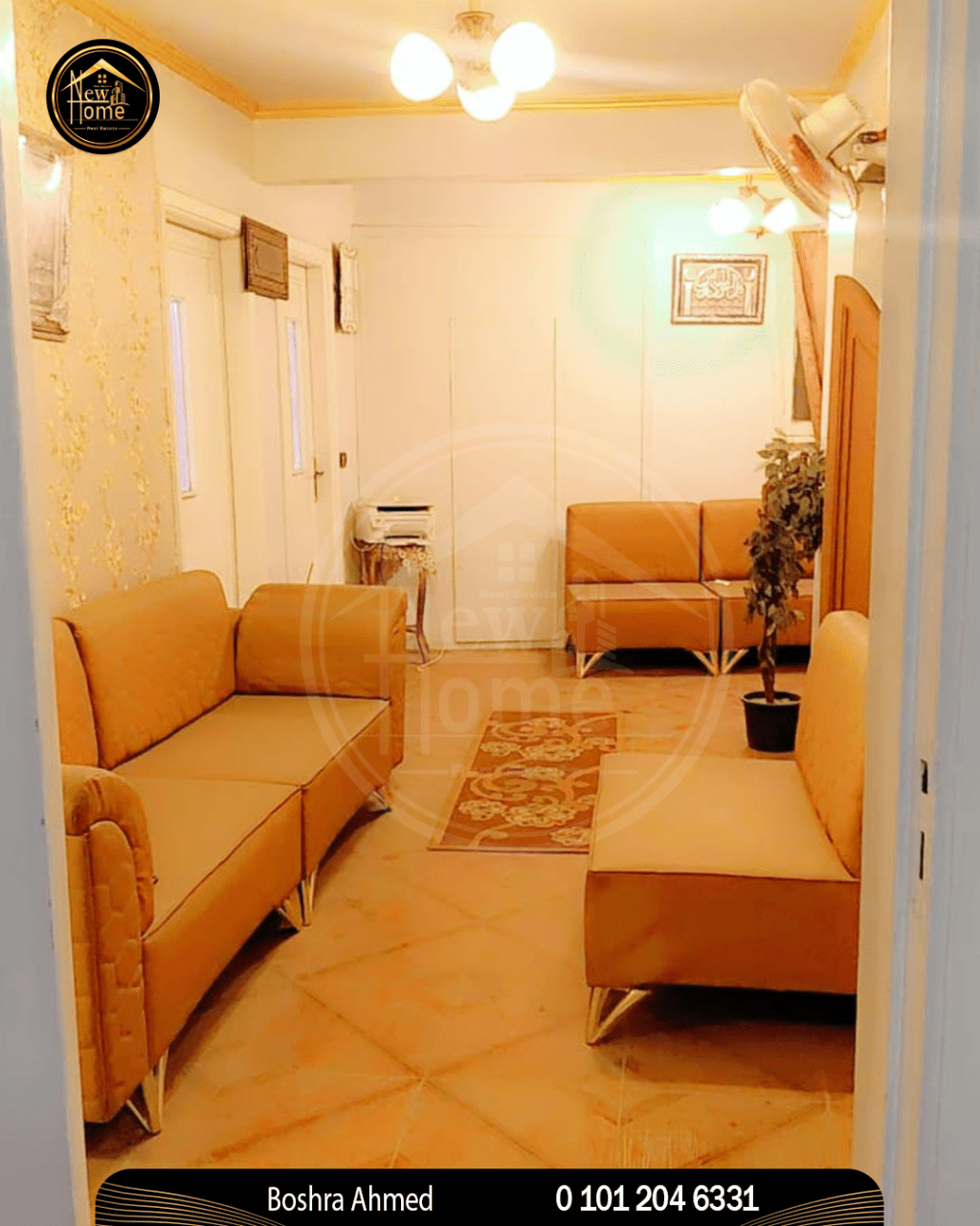 Apartment for rent, new, 160m - Al - Seyouf Al - Saa'Agent Bushra Ahmed 01012046331 - 4 bedrooms + 1 reception room + 2 bathrooms + 1 kitchen - 2nd floor, 5 - story building - No elevator - Licensed - Super deluxe finishing - Meter available (electricity, water, gas) Cash 15000 - Code 0104