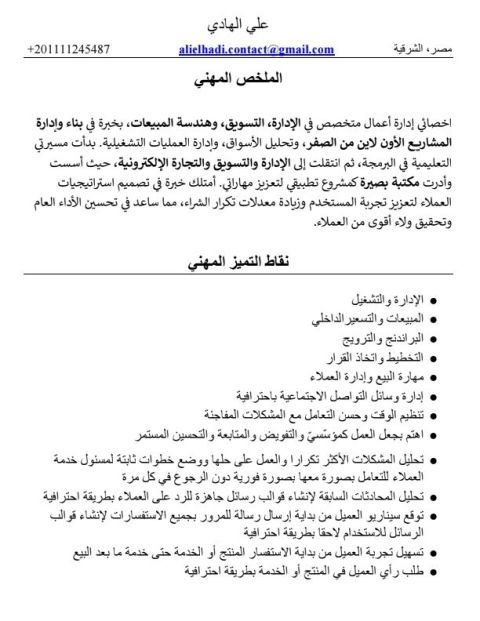 جاهز لفرص جديدة في الإدارة، التسويق، والتجارة الالكترونية. أضفت سيرتي الذاتية بالعربية والانجليزية مع صورة مطولة لجزء من معرض أعمالي، والتي تتضمن خبرات عملية في تأسيس وإدارة مشروع Bassera Bookstore لتطبيق المعرفة في التجارة الالكترونية، تحليل الأداء، وتحسين تجربة العملاء