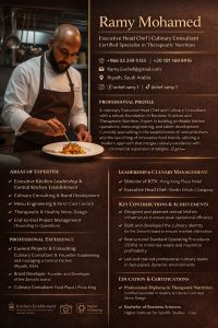 Executive Head Chef & Consultant with a Business Science degree and Therapeutic Nutrition certification. Expert in establishing central kitchens and optimizing hotel operations for peak profitability. I specialize in menu engineering, cost control, and SOP development. A visionary leader focused on building food brands and leading professional teams to transform culinary concepts into successful