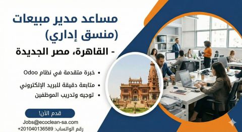 مطلوب عاجل مساعد مدير مبيعات المكان القاهرة - مصر الجديدة - شارع محمود حسن الشروط خبرة قوية في المبيعات اتقان برنامج أودو للمبيعات لغة انجليزية قوية اجادة الاكسل ومتابعة الايميلات ومتابعة سير العمل قدرة عالية على المتابعة الدقيقة المهام مساعدة مدير المبيعات ومتابعة فريق المبيعات في مصر والسعودية والامارات التقديم من خلال الواتساب أو الايميل (الشركة لها مقر عمل في مصر والسعودية)