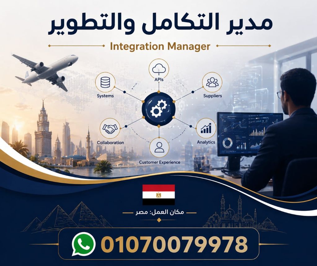 شاغر وظيفي لدى أحد شركات السياحة بالمملكة العربية السعودية - مكة المكرمة "مدير التكامل والتطوير Integration Manager" إدارة عمليات ربط الأنظمة والمنصات (APIs / Systems Integration) وتحسين كفاءتها - تحسين تجربة العملاء من خلال تطوير العمليات وتعزيز التعاون مع الموردين - تحليل البيانات وتحديد نقاط الضعف واقتراح حلول تشغيلية فعالة - التنسيق بين الفرق التقنية والتشغيلية لضمان سلاسة تنفيذ المشاريع يشترط