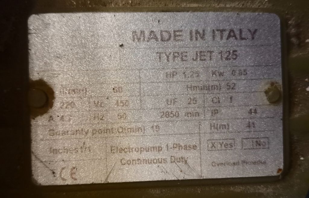 موتور مياه إيطالي 1.25 حصان مستعمل بحالة جيدة معه أوتوماتيك