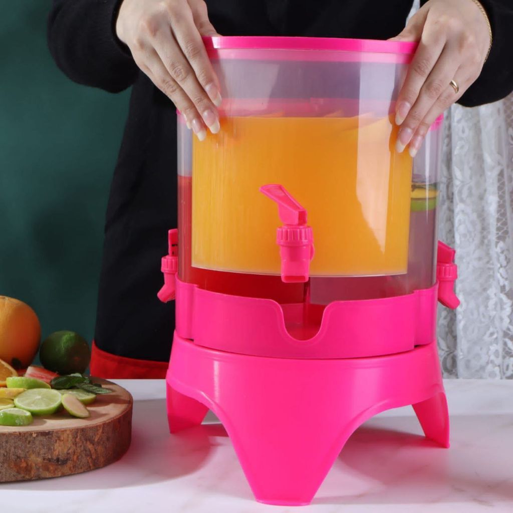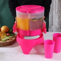 سب نسر عصير بالوريا الجديد مع مفرش هدية (كرسي + مفرش + 3 كوب + دوار + 3 خانة) بلاستيك صحي يمكنك وضعه واستخدامه داخل الثلاجة وخارجها 360 درجة وسهل الاستخدام اجمالي السعة 4.5 لتر
