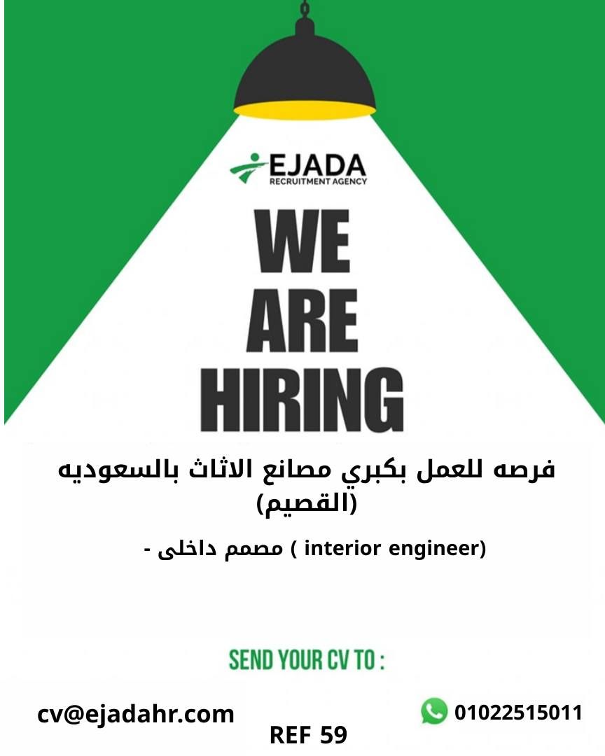 فرصه للعمل بكبرى مصانع الأثاث في السعودية (القصيم) مصمم داخلي (interior designer) خبرة من 3 5 سنوات في التصميم الداخلي خبرة في برامج التصميم الداخلي 3ds Max SketchUp AutoCAD خبرة سابقه بمجال الأثاث برجاء سرعة ارسال السير الذاتية مع كتابة المسمى الوظيفي