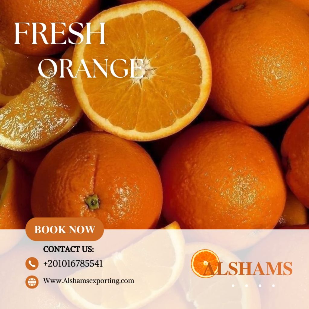 Alshams for Exporting Agricultural Crops We are pleased to announce that the season for exporting premium Egyptian fresh oranges is about to begin Our team is fully prepared to deliver top - quality products with the highest export standards. Book your quantity now to secure your shipment early Full product follow - up from sorting and packing until it reaches the customer We ensure comfort, trust