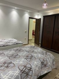 A luxurious apartment for daily and monthly rent in Mohandessin, at Midan Lebanon. It consists of 2 bedrooms, a bathroom, a kitchen, and a reception area. It is very close to cafés and restaurants