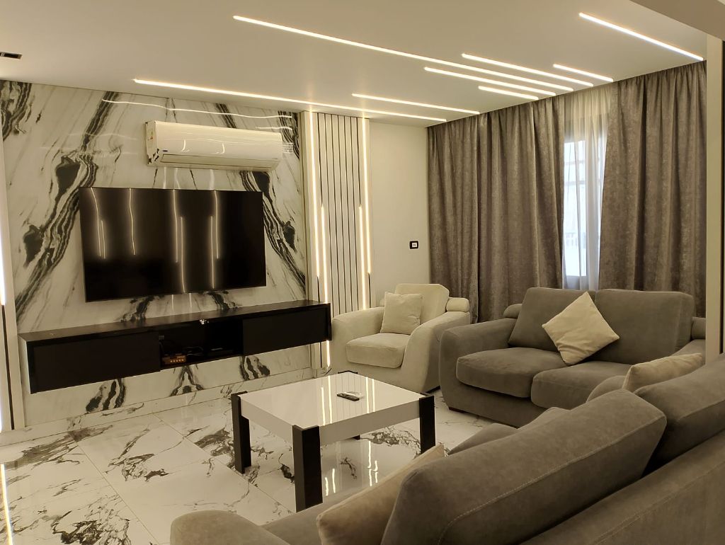 شقق فندقية للإيجار في مصر ريسبشن وسفره وغرفتين نوم سرسر واحد والأغرفه الآخره سريرين الشقة مكيفه مطبخ مجهز بالكمل لطبخ في منطقة مساكن شيراتون منطقة هادية ويوجد بها جميع الخدمات