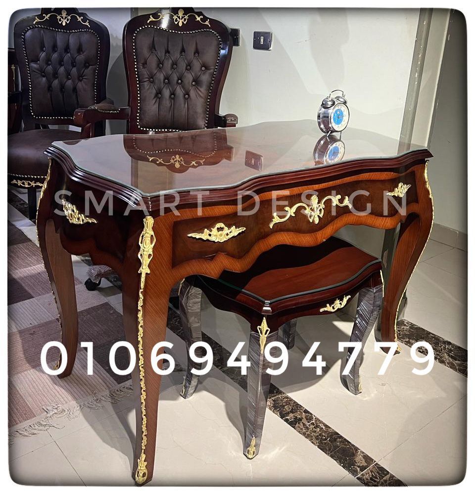 مكتب كلاسيك خشب زان مطعم نحاس 3 درج معه قرص زجاج متاح جميع مستلزمات الأثاث المكتبي المودرن والكلاسيك كما يوجد لدينا معاينة مجانيه للشركات والمؤسسات