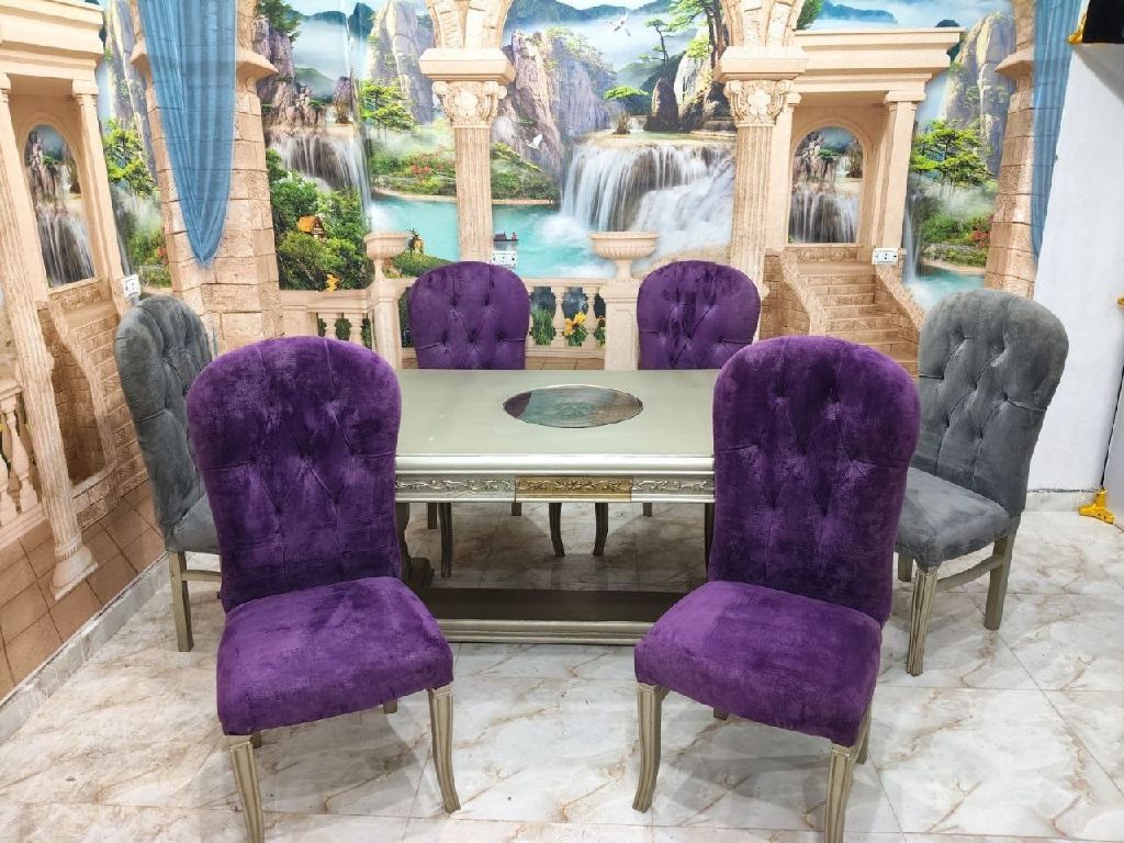 سفره عمولة خشب زان أحمر 6 كراسي مقاسه 200 سم في عرض 100 سم تنفع لعريس وعروسه الله يبارك لصاحب النصيب السعر 6700