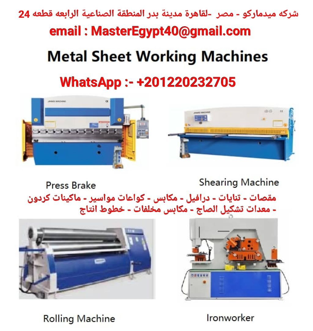 معدات تشكيل الصاج مقصات صاج تنايات صاج هيدروليك مكابس ودرافيل ضمان خمس سنوات أرقى المكونات الأوروبية مصدرين لجميع الدول العربية فروعنا في القاهرة مدينة بدر ورمسيس وباسوس